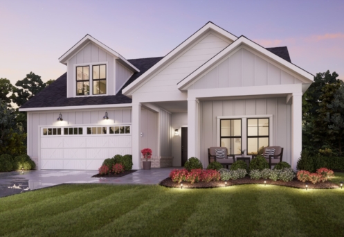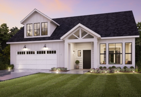 Discover the Promenade – a two-bedroom, two-bathroom home offering a universal design including a private courtyard and covered porch, sitting room, fireplace, and deluxe kitchen.