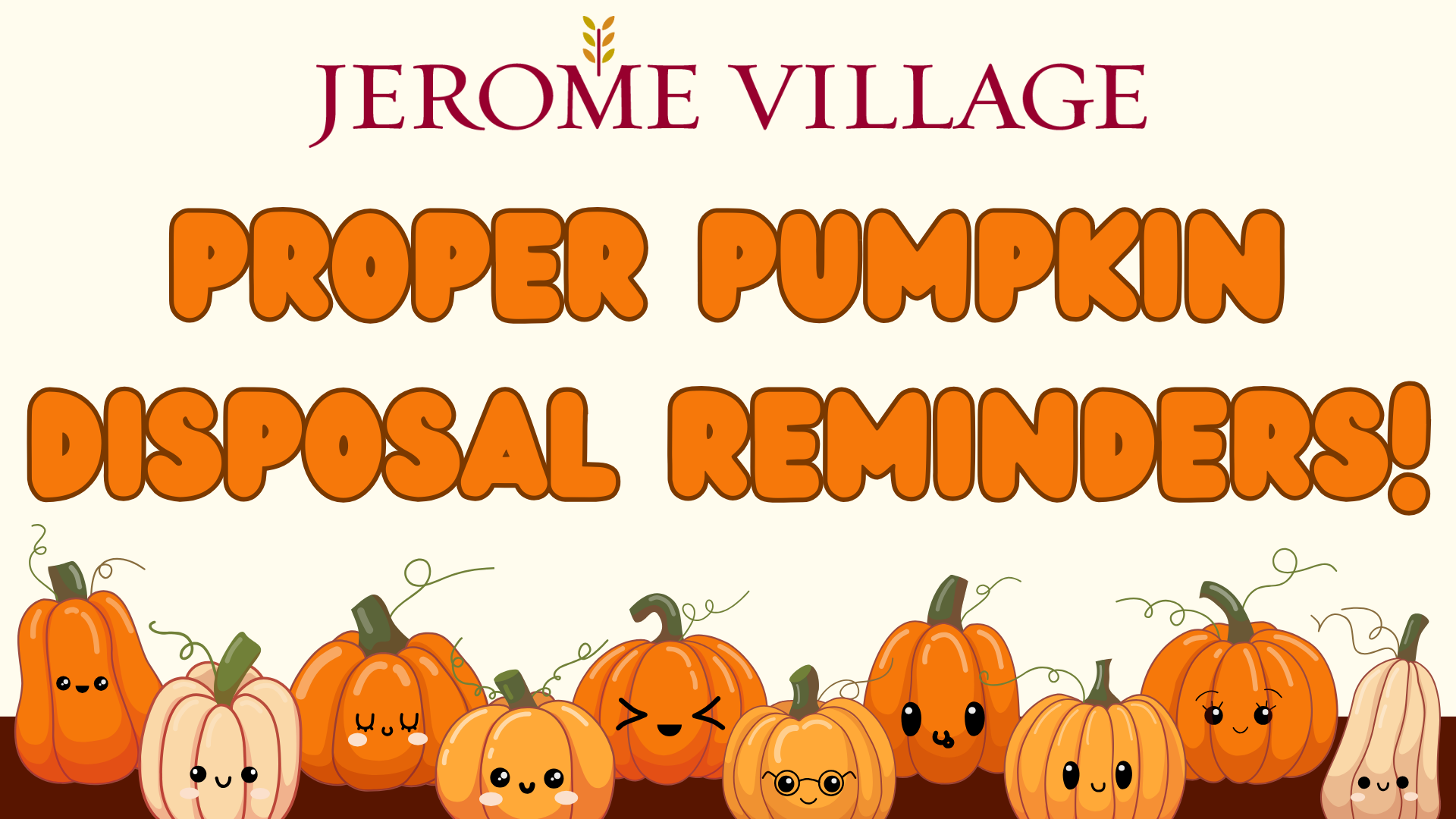 Please remember, community rules prohibit disposing of pumpkins—or any waste—in Jerome Village common areas, including wooded and tall grass areas. Instead of tossing your pumpkins in the trash or leaving them behind, consider composting!