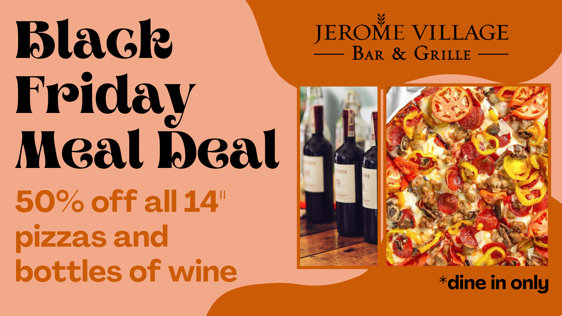 Take a break from the shopping madness and treat yourself! Enjoy 50% off all 14” pizzas and 50% off bottles of wine—the perfect way to unwind after a busy day of deals.