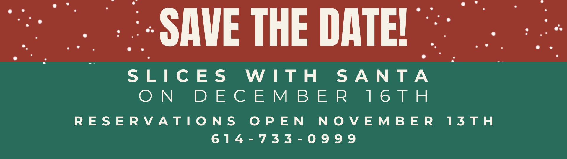 Save the date! This year’s Slices With Santa will take place on Tuesday, December 16th. Reservations will open November 13th- mark your calendars!