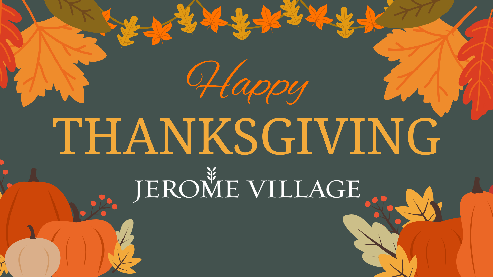 Thursday, November 27Happy Thanksgiving from the Jerome Village Community Center and Property Management staff at Jerome Village! We wish you a warm and joyful holiday filled with gratitude, delicious food, and great company.